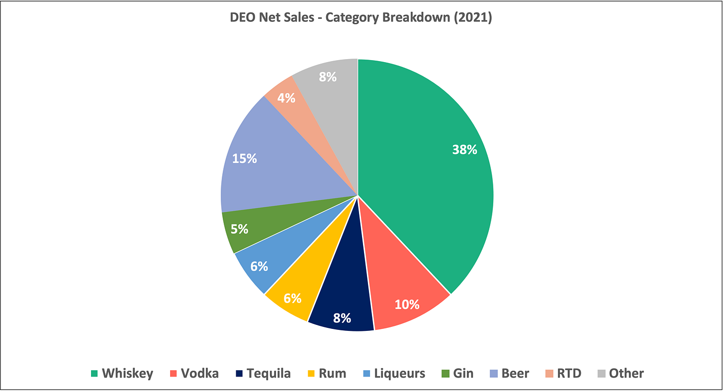Despite management’s emphasis on higher tier brands, the company has held onto non-premium, global cash cows like Captain Morgan and Smirnoff and value brands like Gordon’s Gin. There is no one brand or spirits category that totally dominates the company’s top and bottom lines — though, whiskey comes close. The company is certainly not dependent on one or two specific brands to drive growth. With the company’s 200+ brands spread out across many spirits categories throughout the world (plus its beer portfolio), it is almost as if the company is a sort of global index of premium and popular alcohol brands.