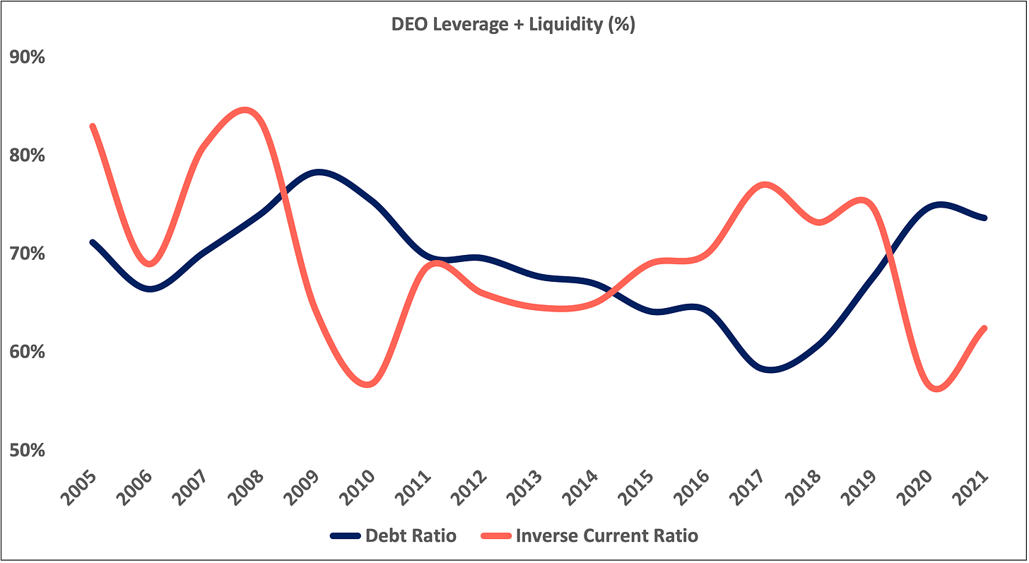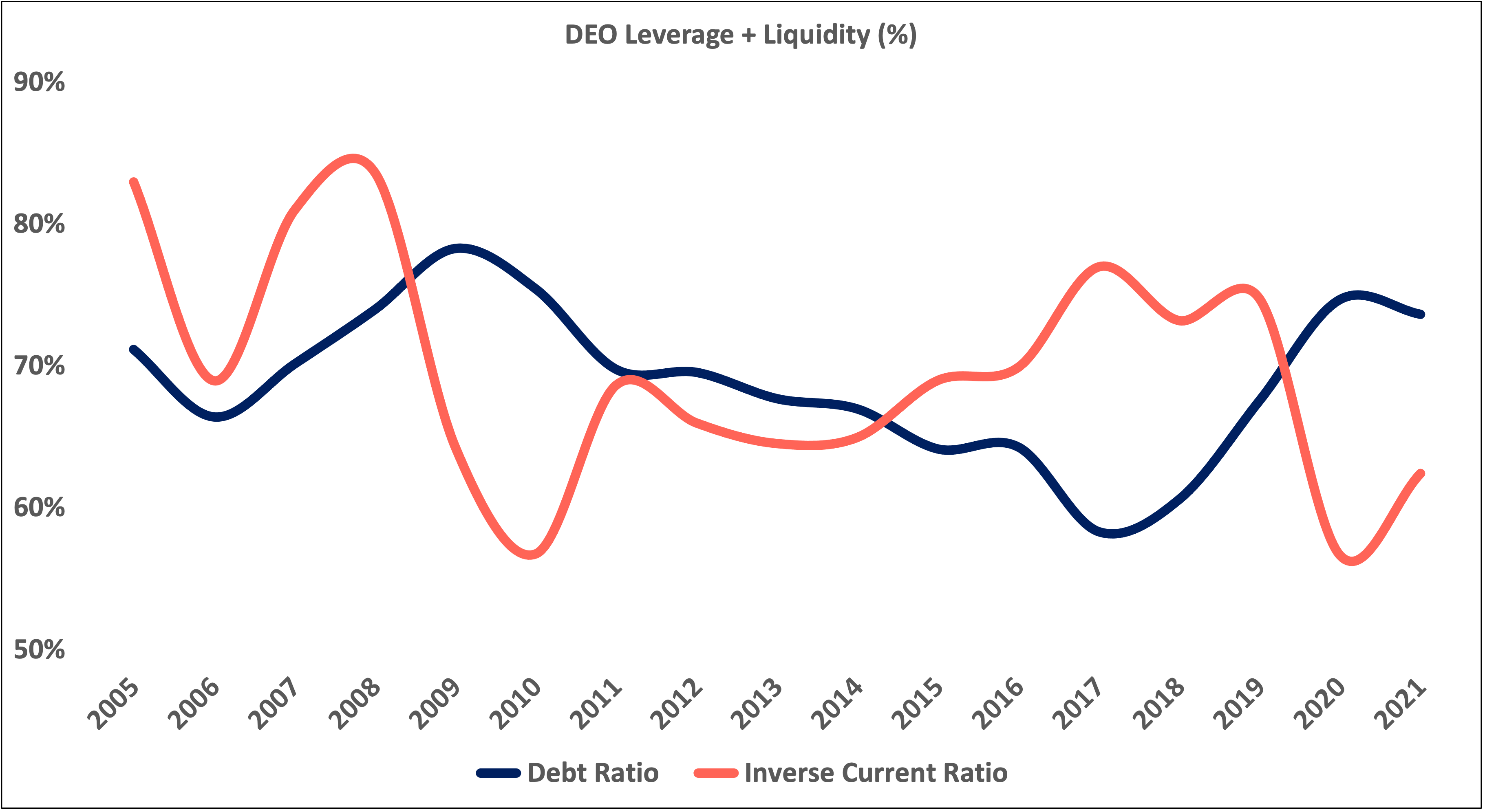 Covid. Diageo has been hit especially hard by Covid due to its exposure to on-premise consumption (i.e. going out). Its highly diversified, global portfolio and the tendency of consumers to buy and drink its alcohol products at bars, pubs, and restaurants took a notable toll on Diageo’s business in 2020. Free cash flow fell almost 40% in 2020 (compared to an 11% drop at Brown-Forman). Fortunately for shareholders, the company is seeing a rebound as consumers have been leaving the home more often in 2021.